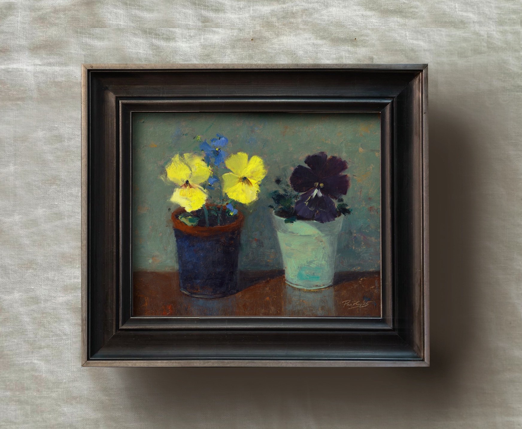 Original oil painting on linen canvas mounted on board.