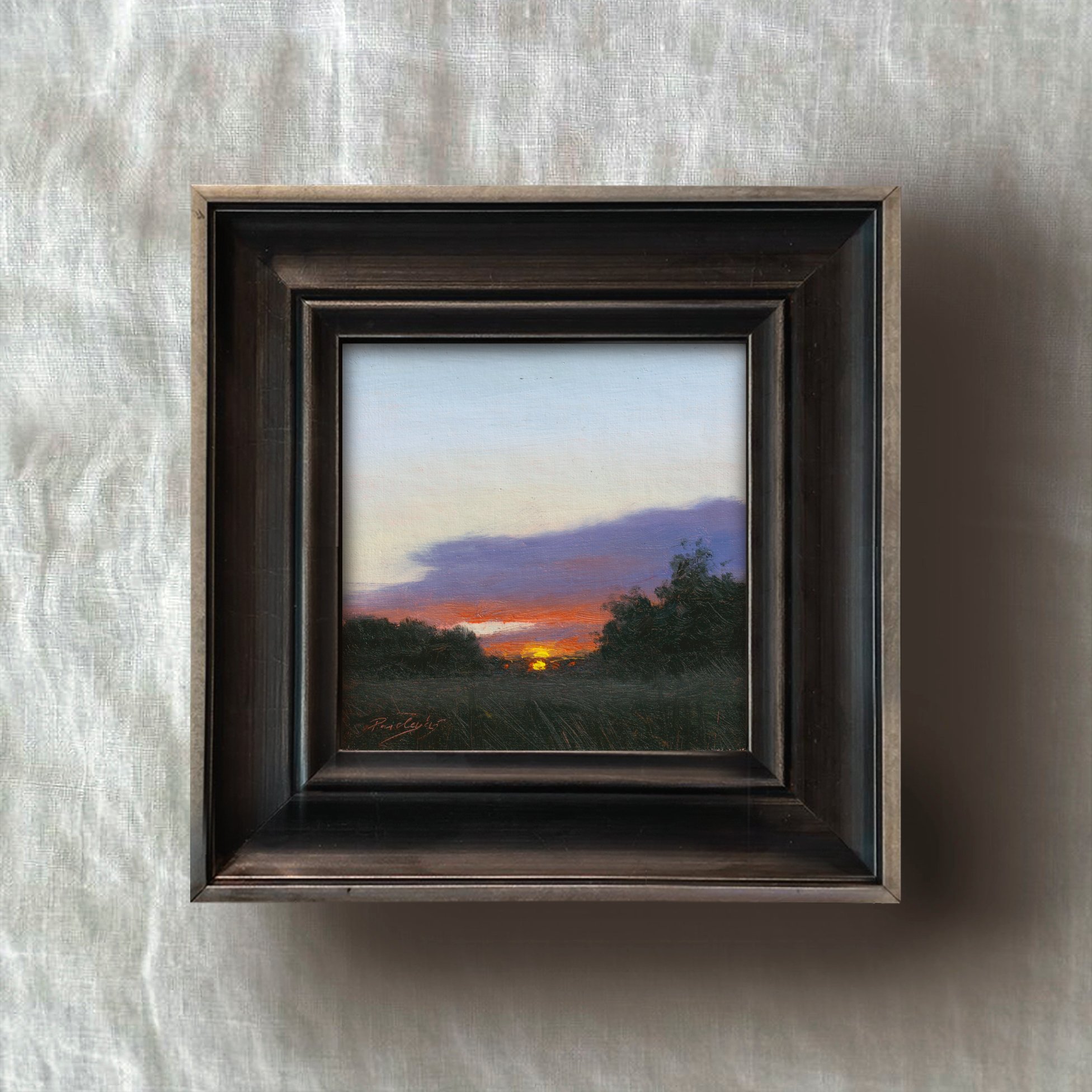 Original oil painting on linen canvas mounted on board.